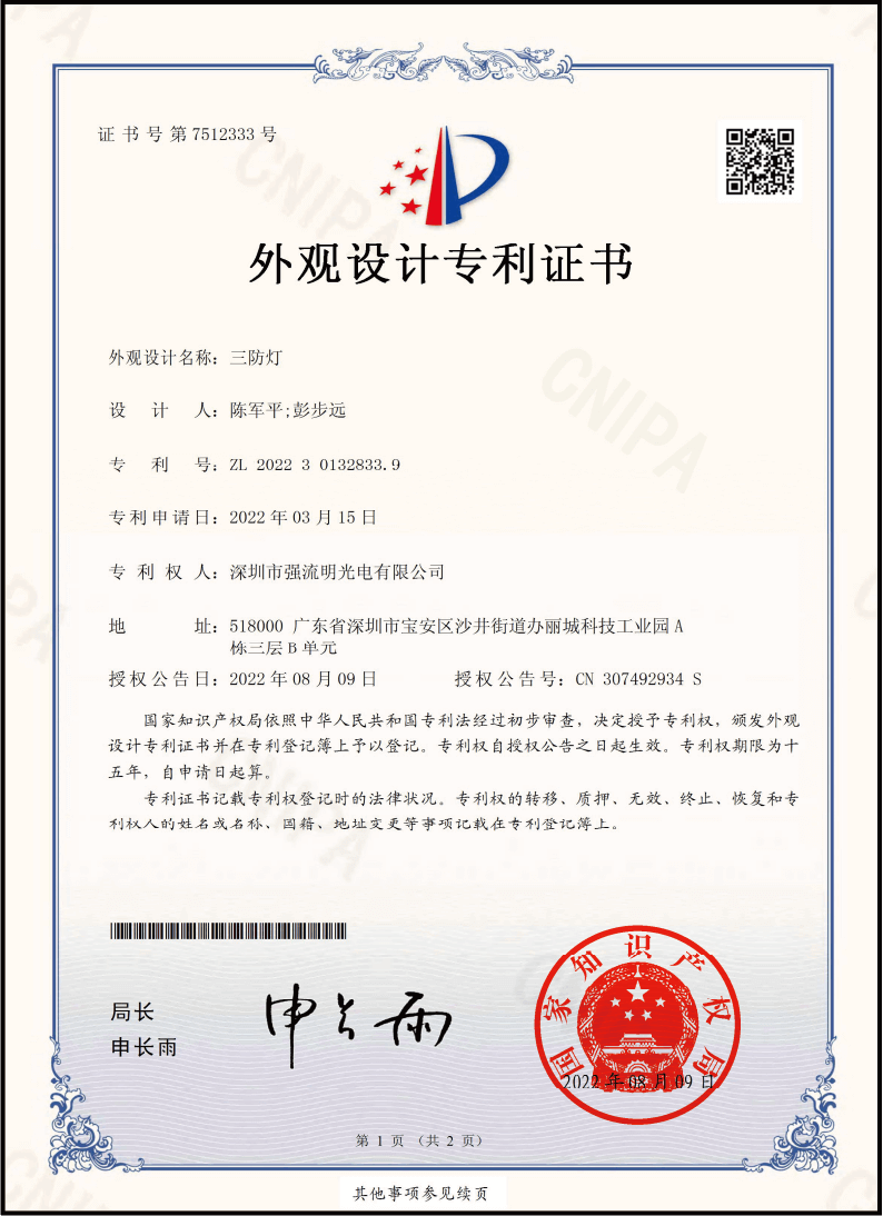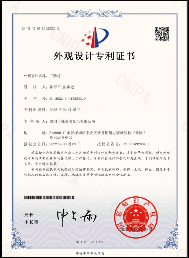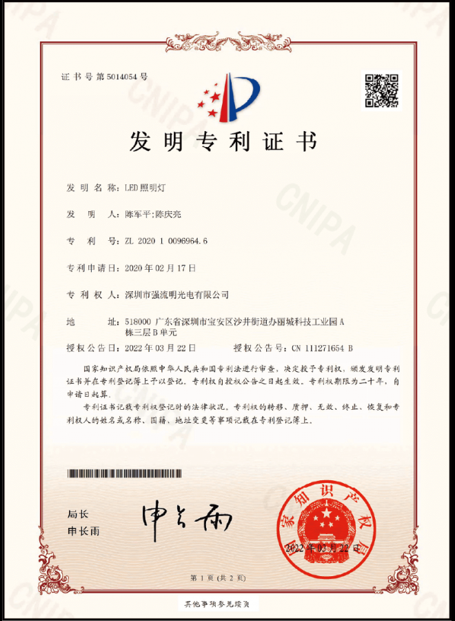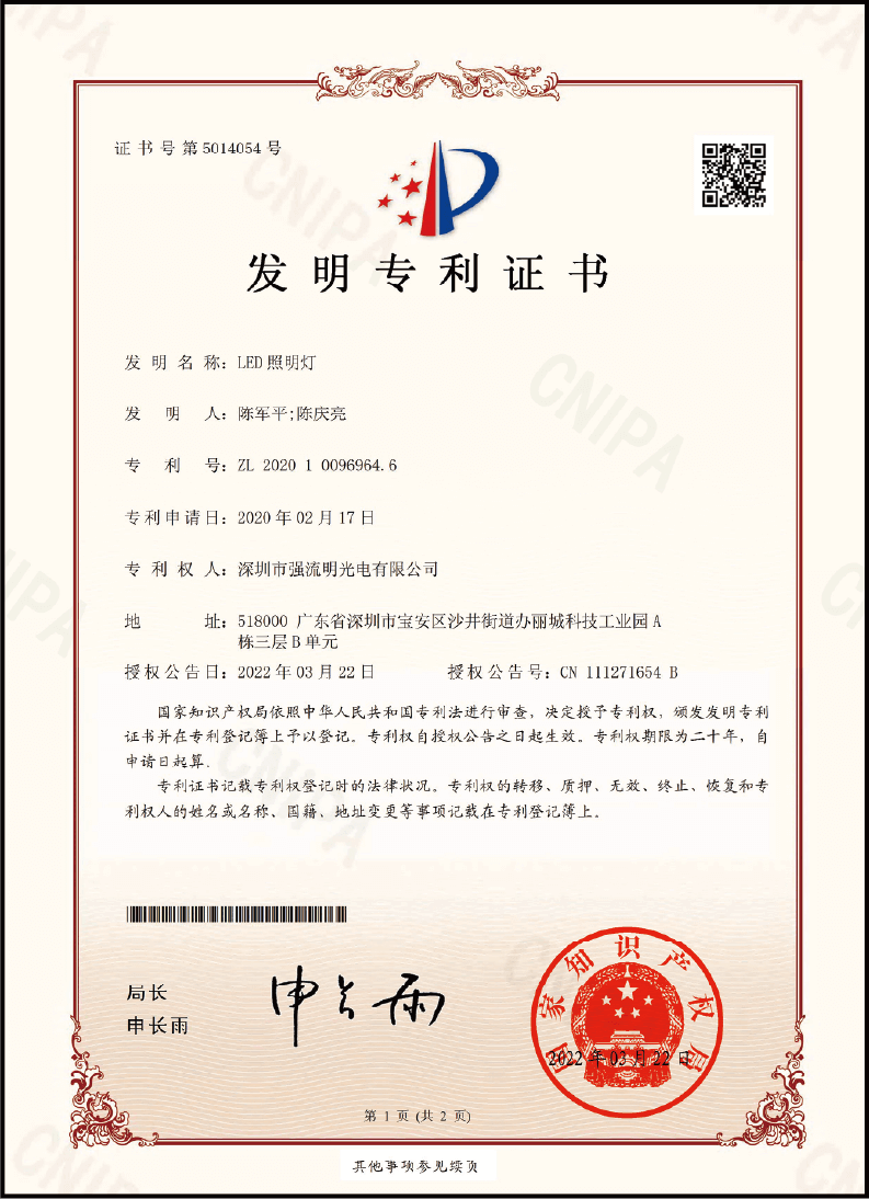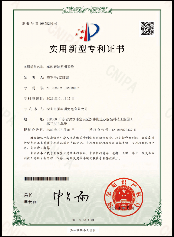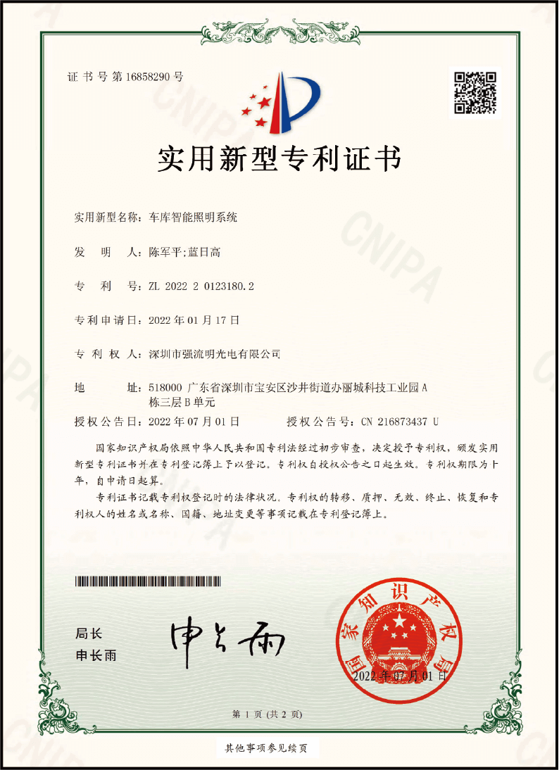 • Utility Model Patent Certificate - Garage Intelligent Lighting System