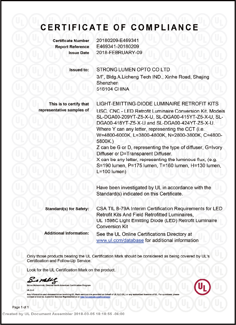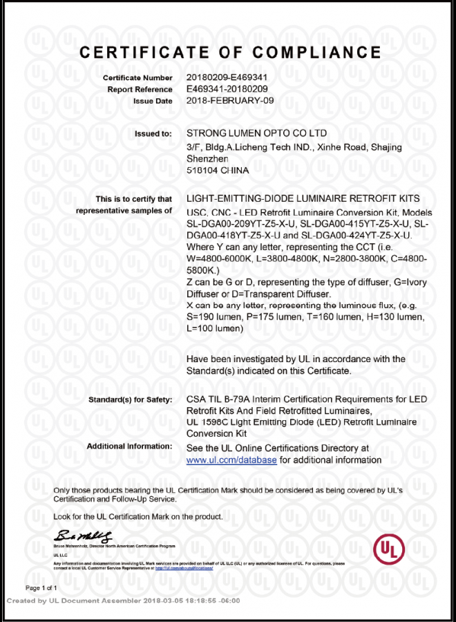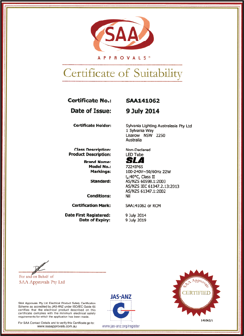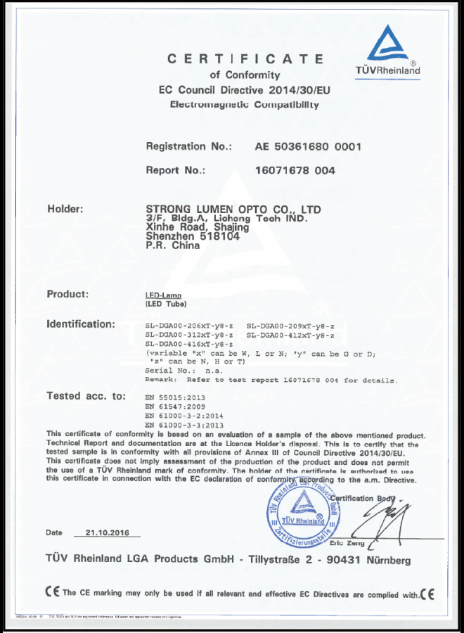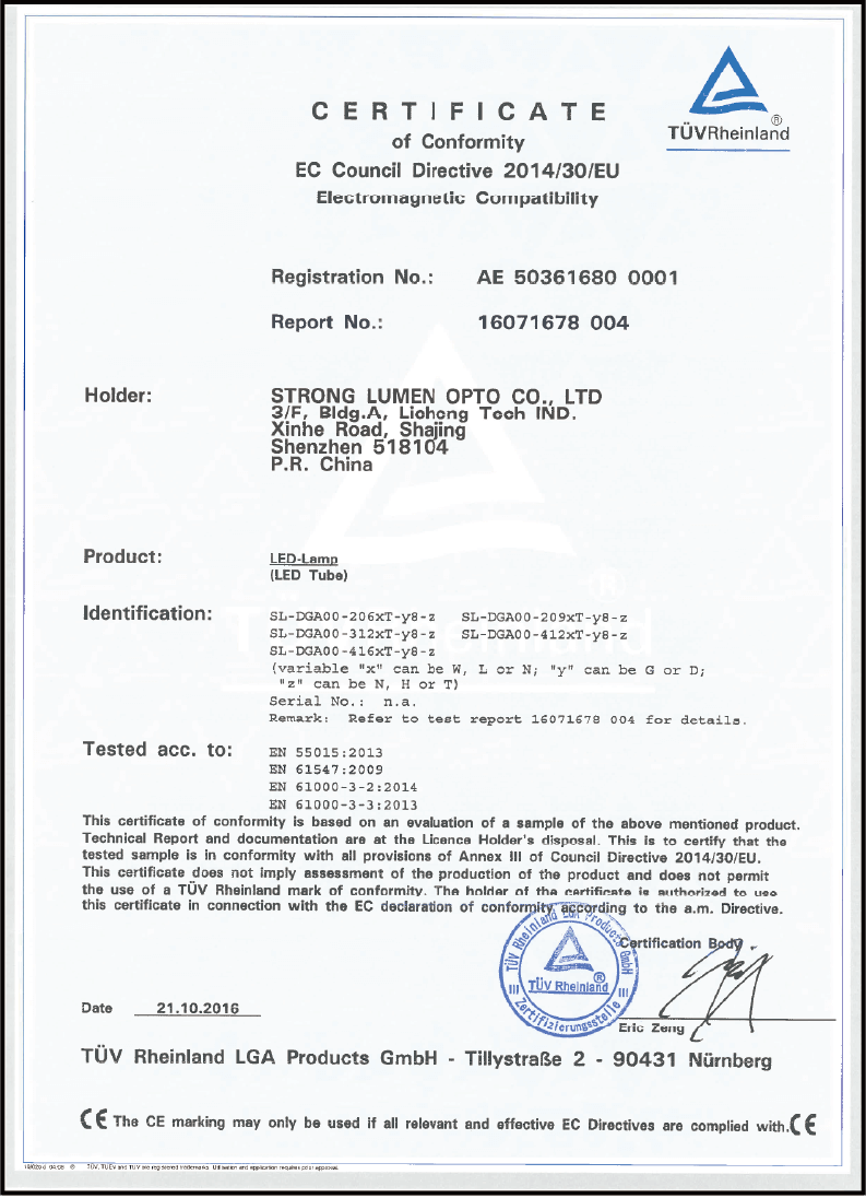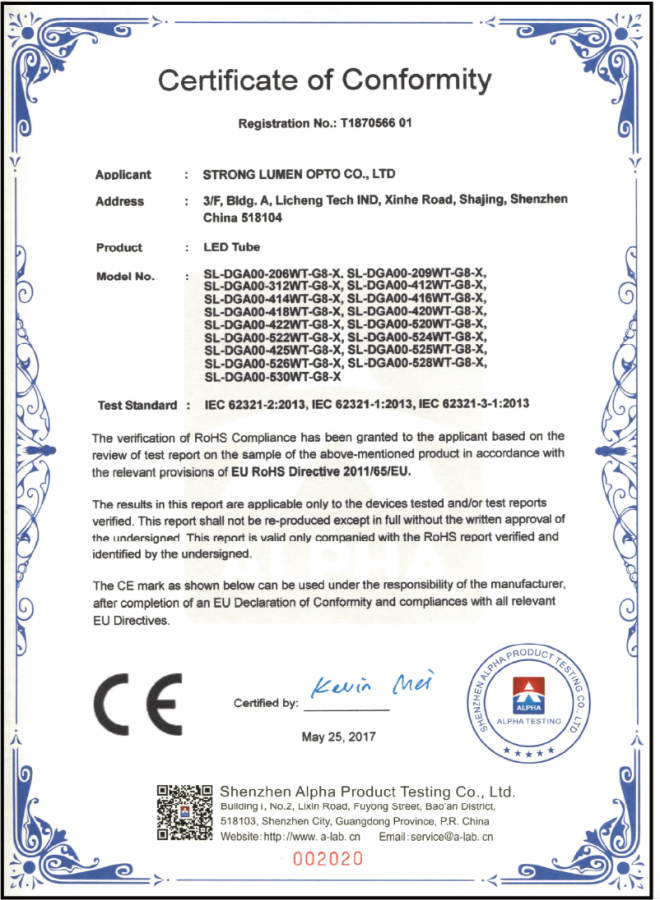 • Utility Model Patent Certificate - A High Light Efficiency LED Tube