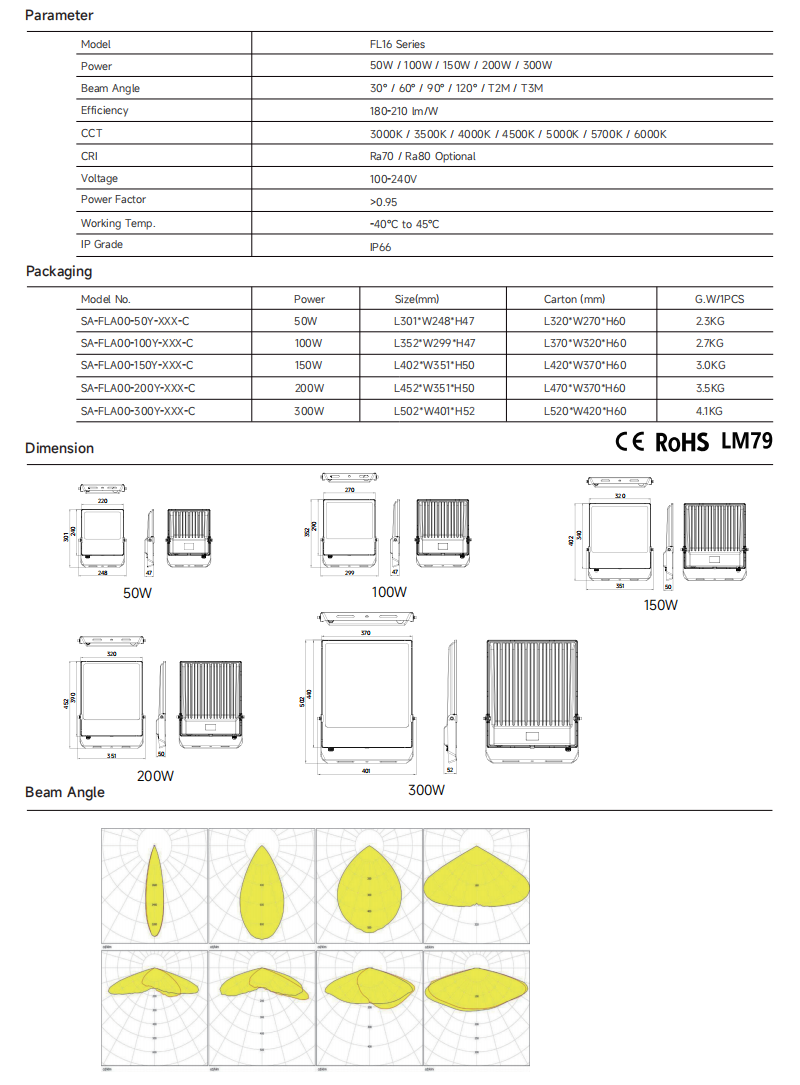Professional anti-glare full cut-off light distribution: luminous Angle 30°/60°/90°/120°  T2M/T3M is optional.