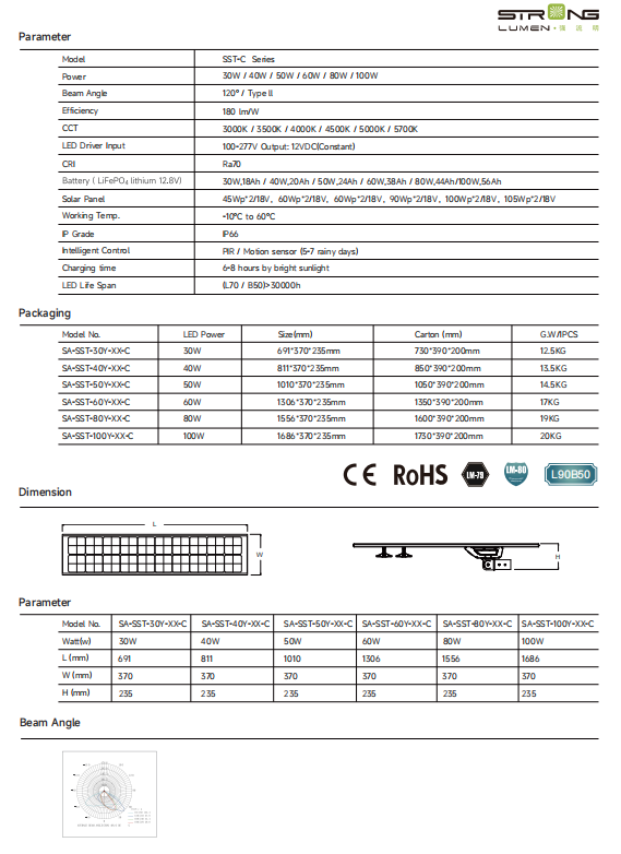 Modular Design: Integrated solar panel, controller, lithium battery, and LED light source, excellent heat dissipation, low light decay, long lifespan.