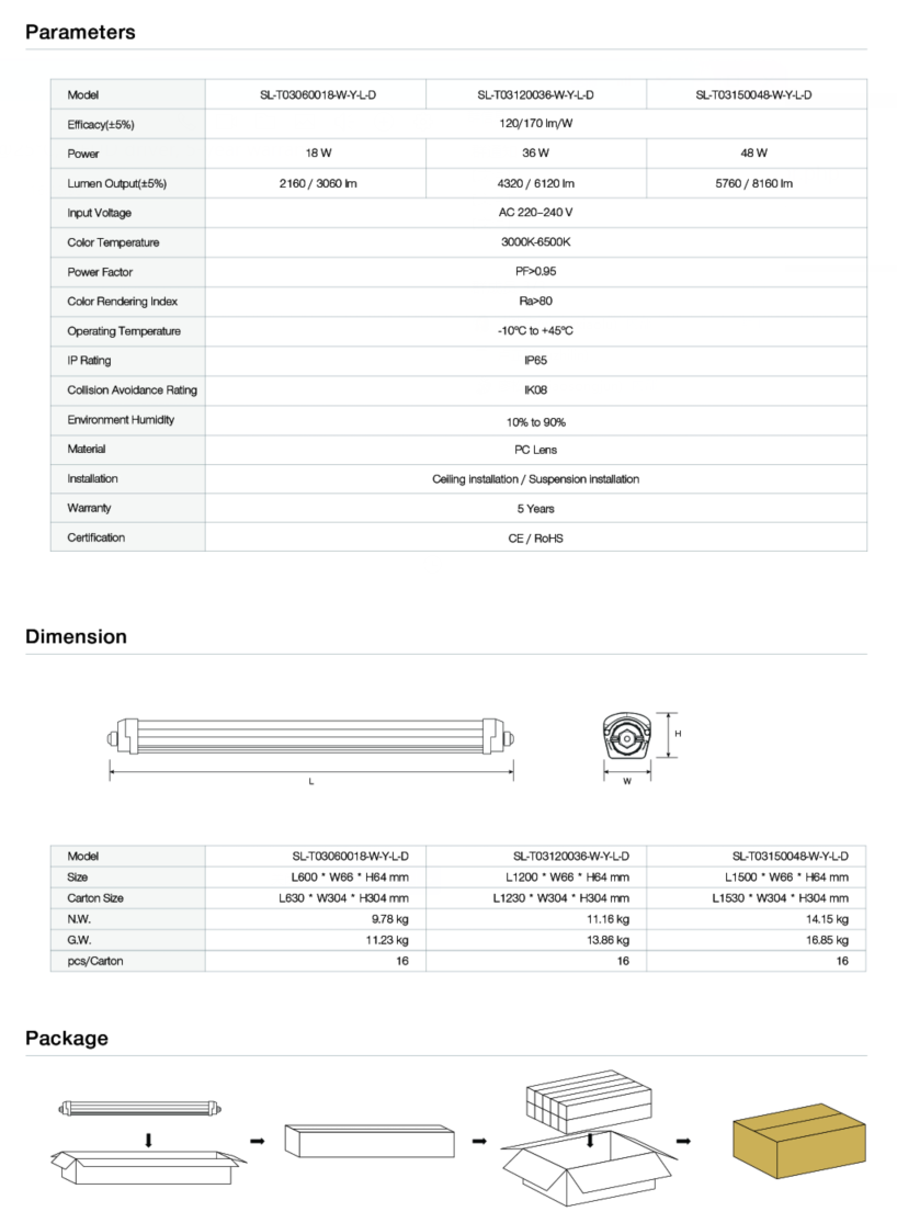TR03 Tri-proof Light 120/170 lm/W