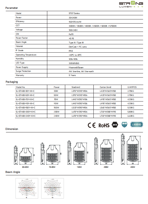 High Efficiency: 150-170 lm/W, saves 70% energy compared to fixtures with the same wattage