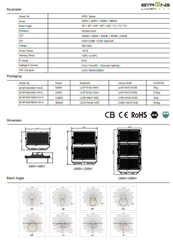 High Efficiency: 110-160 lm/W, excellent light output, energy-saving.