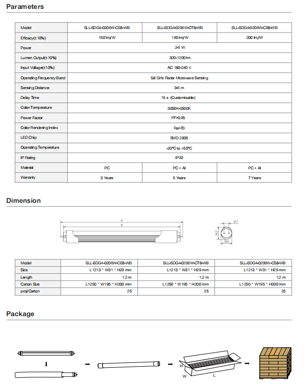 CE8-WB微波感应灯管具备智能车辆检测功能,车来即亮、车走即暗,实现最大化节能。5.8GHz工作频率抗干扰能力强,提供单/双端电源输入选择(内置驱动),安装灵活。低光衰设计搭配5年质保,大幅降低维护成本。-20°C至+55°C的宽温域设计适应各种环境。适用于办公区、车间、停车场、酒店及超市等场所,将智能感应与持久耐用相结合,显著节省能源与运营成本。